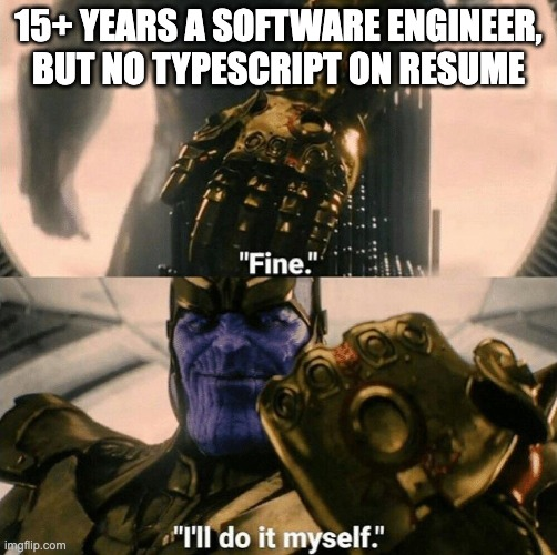Recently, I had a conversation with a hiring manager who dismissed me because I didn’t have TypeScript experience. Never mind the 15+ years of software engineering across multiple languages and platforms - no TypeScript checkbox meant no interview.